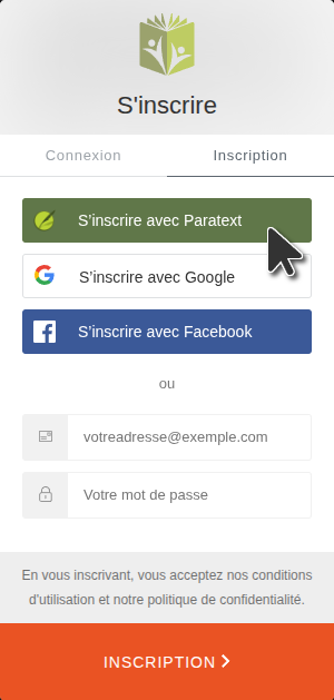 - Si vous avez déjà une inscription à Paratext (ou si vous avez créé un compte Scripture Forge), cliquez sur le bouton "Connexion" :
