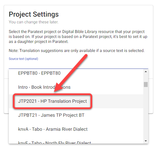 After clicking on “Connect” you will be asked to select your Project Source. From the available drop-down list, select the source you wish to use for your project.